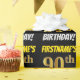 This wrapping paper design features a message like "FIRSTNAME’S 90th BIRTHDAY!", with the "90th" having a faux/imitation gold-like colour appearance, and with the name and "BIRTHDAY" in a fun, bold font. The name is customisable, and the background is coloured black. Wrapping paper like this could perhaps be used when wrapping birthday gifts being given to somebody in celebration of their ninetieth birthday. [~Z0000203]