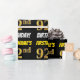 This wrapping paper design features a message like "FIRSTNAME’S 92nd BIRTHDAY!", with the "92nd" having a faux/imitation gold-like colour appearance, and with the name and "BIRTHDAY" in a fun, bold font. The name can be personalised, and the background is coloured black. Wrapping paper like this could perhaps be used when wrapping birthday gifts being given to somebody in celebration of their ninety second birthday. [~Z0000203]