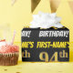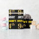 This wrapping paper design features a message like "FIRST-NAME’S 94th BIRTHDAY!", with the "94th" having a faux/imitation gold-like colour appearance, and with the name and "BIRTHDAY" in a fun, bold font. The name can be personalised, and the background is coloured black. Wrapping paper like this could perhaps be used when wrapping birthday gifts being given to somebody in celebration of their ninety fourth birthday. [~Z0000203]