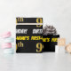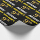 This wrapping paper design features a message like "FIRST-NAME’S 9th BIRTHDAY!", with the "9th" having a faux/imitation gold-like colour appearance, and with the name and "BIRTHDAY" in a fun, bold font. The name can be personalised, and the background is coloured black. Wrapping paper like this could perhaps be used when wrapping birthday gifts being given to somebody in celebration of their ninth birthday. [~Z0000203]