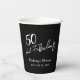 Black Fifty and Fabulous Script Birthday Party Paper Cups.