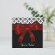 Elegant Fleur de Lis black and white with bright red bow design party invitation. This template design works well as an invitation to a birthday party, cocktail party, holiday party, corporate party, black tie formal, prom, retirement party, graduation party, bachelorette party, engagement party, wedding, New Year's Eve party, and any other special occasion. Add your details to the front and back by simply choosing the orange "Customise it!" button to begin adding your event details, font style, font size & colour, and wording. Please note - all of the invitation designs you will find on Zazzle are printed graphics on flat paper stock with no actual jewels, bows, raised, embossed, or added parts or pieces.