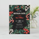 Black floral christmas birthday invitation