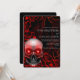 Black floral dark moody gothic skull red roses - scary and spooky Halloween Wedding Invitation.