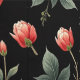 Add a touch of elegance to your space with this luxurious black floral pattern. The deep black background is adorned with blooming pink peonies and lush green leaves, creating a sophisticated and romantic atmosphere. Perfect for curtains, cushion covers, table runners, or even clothing fabric, this design will elevate your style to the next level. Made with high-quality materials, it ensures long-lasting beauty. Highly recommended for those who want to transform their home into a gallery-like space!
