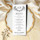 Black and white floral frame with monogram budget wedding menu card. Add a touch of elegance to your wedding reception with this customised monogrammed menu card, crafted to highlight both your personal style and the delectable cuisine of the event. The front features a sophisticated black floral frame in vintage style, artfully framing the couple's initials in black. The delicate floral arrangement brings a romantic and timeless feel to the design. Flip the card to reveal a solid black back that enhances the overall aesthetic with its sleek simplicity. Whether displayed at each guest's place setting or shared as a keepsake, this menu card perfectly blends practicality and charm.