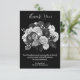 Express your gratitude and appreciation for the love and support received during difficult times with this elegant black and white floral funeral and sympathy thank you card. Featuring a beautiful floral design with delicate white flowers on a black background, this card is a perfect way to convey your heartfelt thanks. The customisable message on the card allows you to add a personal touch and make it unique to your needs. Tha back of this sympathy card is grey with black and white florals. This card is a thoughtful and meaningful way to acknowledge the kindness and sympathy shown to you and your family during a time of loss.