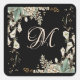 Black Floral Garland Script Monogram Elegant Square Sticker