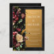 Beautiful bouquet of burgundy & cream flowers mixed with greens bordering modern fonts done in white on a rustic black faux background were used to create this modern wedding invitation. Gold inlay with wedding information. Perfect for any season wedding. Coordinating black on reverse side. Absolutely stunning!