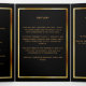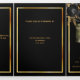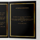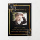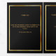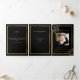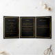 An elegant tri-fold program. A classic black background, a faux gold frame, black florals and space for your photo. Personalise and add name, dates and your text.