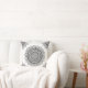 Black floral mandala on a white background cushion