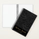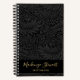 Elegant vintage black floral botanical pattern sketchbook notebook with a custom name in stylish script typography and "sketchbook" in a modern san serif font.