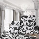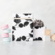Black floral toile on white background wrapping paper.