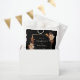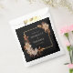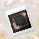 This Black Floral Wedding Favour Bag with the bride and groom's name, wedding date, and 'thank you' feature hand-painted watercolor burnt orange and terracotta leaves, cream and beige dahlias, and beautiful rust-coloured roses arranged around a faux gold foil square frame on a black background. Find matching items in the Black Autumn Romance Collection.