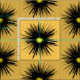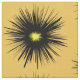This modern floral fabric design features a dramatic abstract pattern of a black flower with a yellow centre on a gold background. An interesting idea for gardeners!