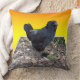 Black Fluffy Chicken On Yellow Popout Big Cushion. Cushion