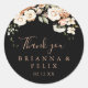 Black Formal Royal Floral Thank You Wedding Favour Classic Round Sticker