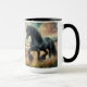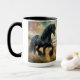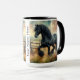This coffee mug features an AI generated image of a powerful and striking looking Fresian horse trotting alongside a rustic fence in a pasture. You can see rolling hills and trees in the misty background. The art style is a mix of oils, acrylics and muted watercolor wash effects. Use Zazzle's many different font styles and colours to add your name and customise the lettering to your preference, or leave it blank if you like. Zazzle also has many backgrounds that you my choose from, as well as icons that you can add to make the image your own. Have fun making it just the way you like! If you need any help customising this design, please don't hesitate to contact me, and I will be more than happy to assist you. You may contact me at KarenCoffelt@wolfmoonartanddesign.com or through Zazzle by clicking on the Chat button (please be aware that I am not available 24/7 to chat, but I will get back you ASAP). Thanks for looking!