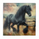 Black Fresian Horse Pasture Rustic Fence Tile