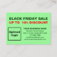 Attract more customers by offering them discount this Black Friday, one of the marketing strategies to have more customers. Customisable enclosure card that you can use to attract more customers to buy your products or clients to like your services. Enclosure card with your business brand as marketing material that you can also use to build brand name awareness. Design colours are dark green and red texts on light green background. To customise this enclosure card, specify the percent discount that you will offer, upload your business logo, type your business name, address, phone number, e-mail and website or your business social media page. Please check the appearance on front and back sides after uploading logo and typing texts. If the appearance is pleasing to you, you can place your order now. If you need to resize and move the logo and texts to fit on this enclosure card, please change in the design tool. You can also change the background colour, font colour and font style in the design tool. Wishing you more sales this Black Friday.