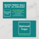 Attract more customers by offering them discount this Black Friday, one of the marketing strategies to have more customers. Customisable enclosure card that you can use to attract more customers to buy your products or clients to like your services. Enclosure card with your business brand as marketing material that you can also use to build brand name awareness. Design colours are white and yellow-green texts on teal green background. To customise this enclosure card, specify the percent discount that you will offer, upload your business logo, type your business name, address, phone number, e-mail and website or your business social media page. Please check the appearance on front and back sides after uploading logo and typing texts. If the appearance is pleasing to you, you can place your order now. If you need to resize and move the logo and texts to fit on this enclosure card, please change in the design tool. You can also change the background colour, font colour and font style in the design tool. Wishing you more sales this Black Friday.