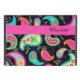 Add a splash of colour to your iPad tablet with this case with a paisley personalised design. The bold colours of this trendy paisley design pop a black background with a fuchsia pink bar for personalisation. Bright, fresh, modern paisleys make a beautiful artistic design that includes inspirational words of Love, Hope, Faith, Inspire, Cherish, Be Happy, Dream, and Live in the background between the paisleys. This Mod Paisley collection, designed by Phyllis Dobbs, uses the colours of teal, turquoise, lime green, wine, yellow, fuchsia and orange to create a fun and whimsey take on the traditional and popular paisley motif. The paisley motif is timeless in appeal but this original art is both trendy and contemporary. Fully customisable for personalisation with your own words to add your own message. Available in multiple colour choices and on many other products.
