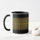 Black and gold coffee cup. The design of this resistant ceramic cup contains a geometric design consisting of rectangles intertwining each other, which in turn form a square. This combination of colors comes in two sizes and is suitable for microwave and dishwasher.