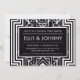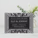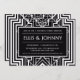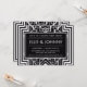 These rehearsal dinner invitations feature an intricate geometric frame, geometric patterns, a black and white colour palette, and other stylistic details all inspired by Art Deco and the roaring twenties. You can customise the sample text fields to your liking.