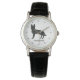 Destei's original cartoon illustration of a black colour German Shepherd breed dog. There is also a personalizable text area for a name. The clock face is made of simple black lines.