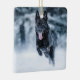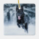 Black German Shepherd in snow Duvet Cover Ceramic Ornament