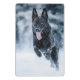 Black German Shepherd in snow Duvet Cover Mini Clipboard