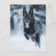 Black German Shepherd in snow Duvet Cover Postcard