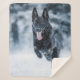 Black German Shepherd in snow Duvet Cover Sherpa Blanket