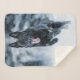 Black German Shepherd in snow Duvet Cover Sherpa Blanket