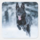 Black German Shepherd in snow Duvet Cover Square Sticker