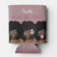 This design features three beautiful natural hair women with full afro, gold jewellery. One has a scowl, one has a flower in her hair, and one is popping bubblegum. They're 3 friends, sisters, cousins, sorors, etc, that love, support and encourage each other. Customise it with your name.