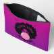Rock your melanin magic on the go with this fun and functional cosmetic bag! This eye-catching design features an illustration of a beautiful Black girl confidently blowing a big bubble, set against a stunning ombre neon purple violet gradient background. The positive and empowering message, "Black Girls Be Popping" adds a touch of inspiration. This spacious bag is perfect for storing all your makeup essentials, toiletries, or travel must-haves. This cosmetic bag is the perfect blend of melanin magic and neon vibes.