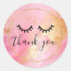 Black Girly Pink Glam Gold Eyelashes Classic Round Sticker