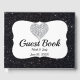 Elegant diamond heart design with black faux glitter decorate this guestbook. Wedding guest books are fun for both the couple and their celebrants. Invite attendees to leave you well-wishes at your reception, and you're guaranteed to have a keepsake to look back on for years to come. Plus, your guests will get to leave their mark on your event, not to mention put in writing whatever they didn't have a chance to express in person on the big day. Personalise the book by changing the text in the fields provided. You can change font style, size, and colour.