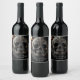 Black Glitter Glam Sparkle Skull Gothic Wine Label