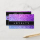 Inspire customers to come back again and again with these fashion forward loyalty cards in blue and purple ombre glitter. Great for zen, meditation classes, life coaches, yoga teachers, therapists, nail and hair salons, makeup artists and spas. This memorable design features a bold design encouraging clients to become loyal customers. The reverse side is easily personalised with your message, business name, and contact information. Template includes easy to punch loyalty reward markers.