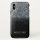 This phone case features a modern trendy faux silver iridescent design on a black background. Personalise it with your name or initials.