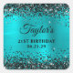 Black Glitter Turquoise Blue Foil 21st Birthday Square Sticker