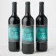 Black Glitter Turquoise Blue Foil 21st Birthday Wine Label