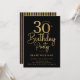 Black and gold 30th birthday party invitation. Trendy modern design, perfect for a stylish men's or women's bday celebration. Features script font and stylish stripes on the back. Customize with your own details. Printed Zazzle invitations or instant download digital printable template.