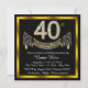 Elegant 40th birthday party invitation with diamond numbers and banner on a black and gold background. This beautiful black and gold 40th birthday party invitation is easily customised for your event. You can change the background colour. This striking design works well for a man or woman. This is a printed design with no real diamonds, silver, glitter, etc.
