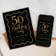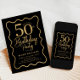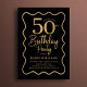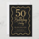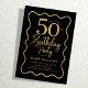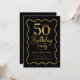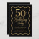 Black gold 50th birthday party invitation. Trendy modern design, perfect for a stylish men's or women's bday celebration. Features wavy border and script font. Customize with your own details. Message me if you need custom age. Printed Zazzle invitations or instant download digital printable template.