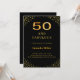 A classic black background, decorated with golden corners. Personalise and add a name and party details.