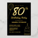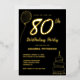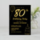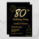 Luxury Black Gold 80th Birthday Party Real Gold Foil Invitation with balloon and birthday cake.