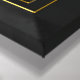 Black gold frame with a black abstract filigree graphic design on many matching decor products for a modern upmarket vacation Villa with a matching Guest book.